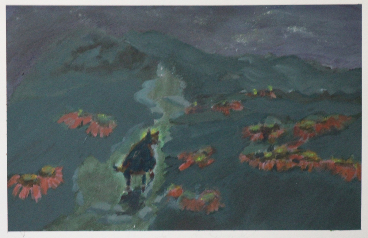 Many of the paintings resemble dreamscapes. My influences are nature, pop art, impressionism and expressionism. The paintings evoke an epic journey. The subject begins alone, in the dark. As the journey evolves, so do the stories. From pain and separation moving into healing and understanding.